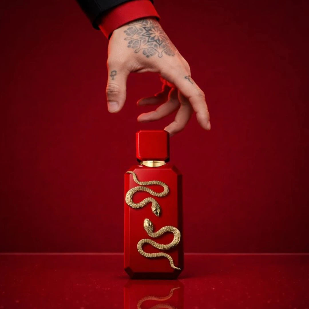 Veneno Scarlet is expressive and daring, designed for those who enjoy fruity sweetness balanced by leathered woods and warm gourmand tones.