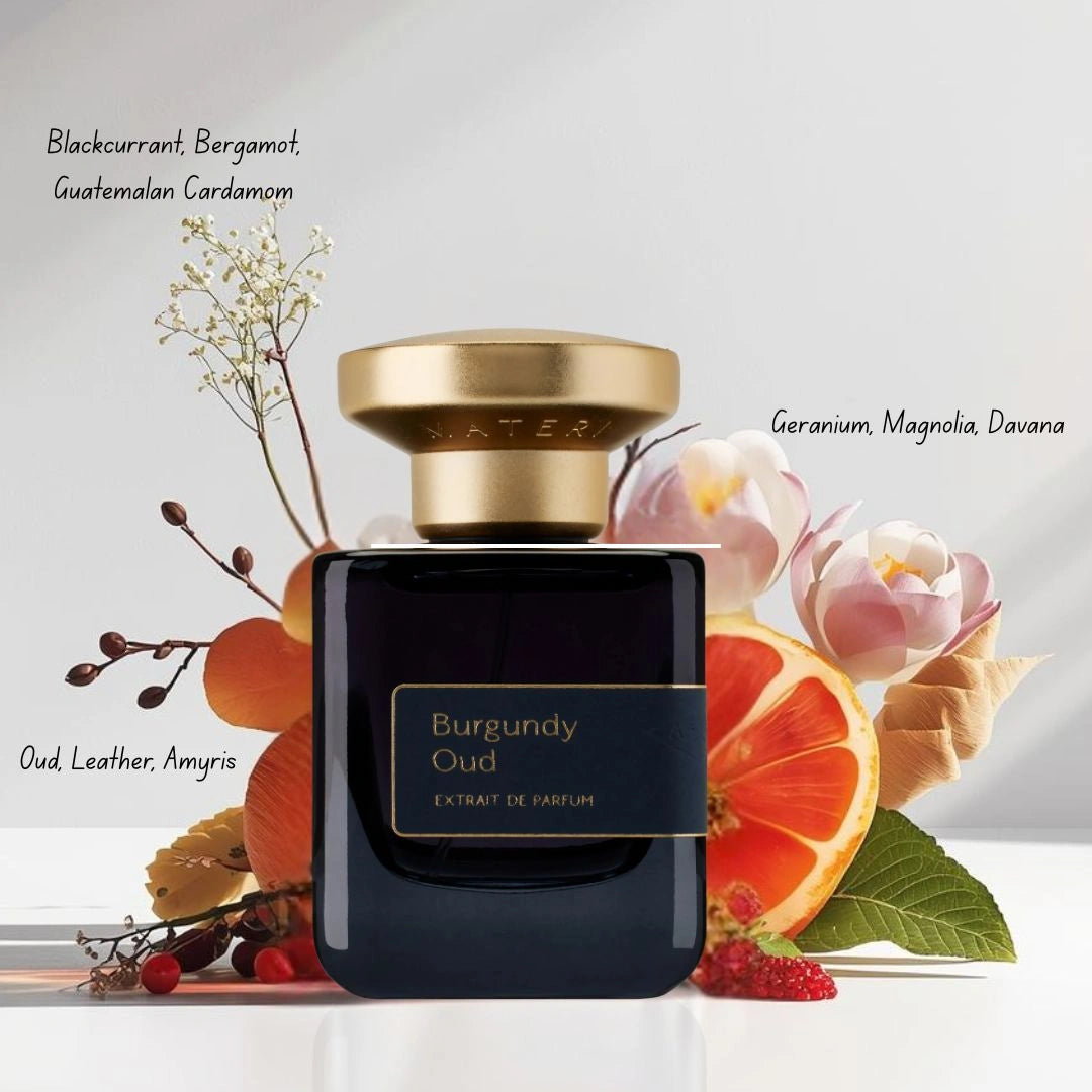 Burgundy Oud is a rich and sophisticated Eau de Parfum that blends fruity elegance, floral refinement, and deep woody warmth. It opens with a sparkling combination of blackcurrant, bergamot, and Guatemalan cardamom, creating a vibrant and intriguing introduction. The heart reveals geranium, magnolia, and davana, adding a floral and slightly aromatic complexity.