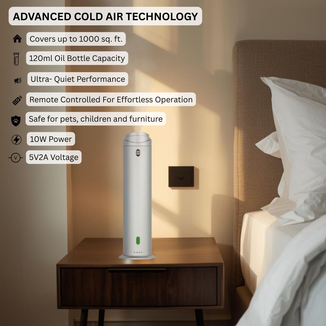ADVANCED COLD-AIR DIFFUSION: Preserves fragrance purity by dispersing oils as a fine, dry mist without heat or water, protecting furniture and artwork from moisture