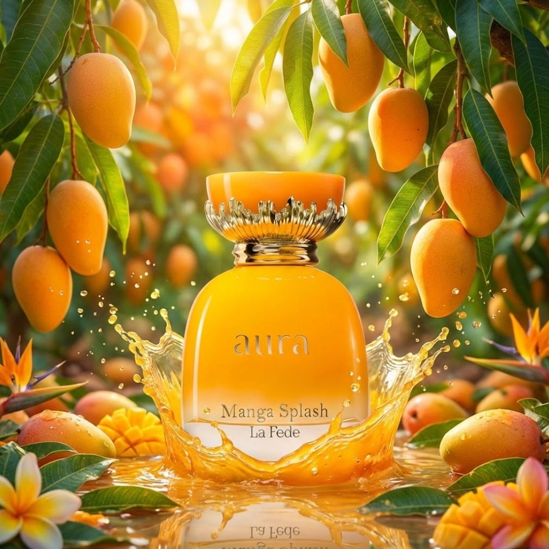 Aura Manga Splash opens with a vibrant burst of mango and blackberry accented by a subtle hint of black pepper, creating a bright and playful introduction filled with energy and sweetness. This opening feels fresh and lively, setting the stage for a charming gourmand-floral composition.