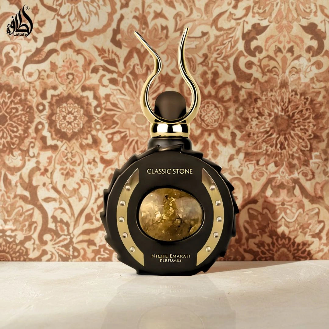 Classic Stone by Lattafa is a bold unisex fragrance, crafted with depth and sophistication. Opening with the warm spice of cardamom, saffron, and cumin, balanced by violet, it creates a striking first impression.